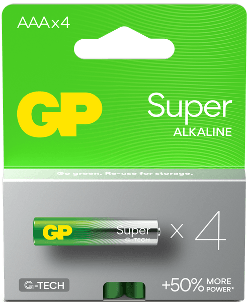 GP Super Alkaline on vakioparisto, joka soveltuu useimpiin tuotteisiin, joilla on matala tai keskisuuri virrankulutus. Paristot tarjoavat luotettavan ja pitkäkestoisen virran arkipäivän laitteisiisi. GP Super Alkaline -sarjan parannettu suorituskyky takaa tasaisen energian pitkäksi aikaa.